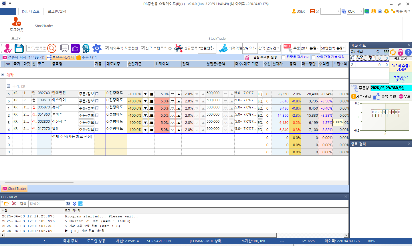 스탁게이트는 로그인 하면, 각 증권사 서버로부터 초기 정보 및 잔고를 수신합니다.